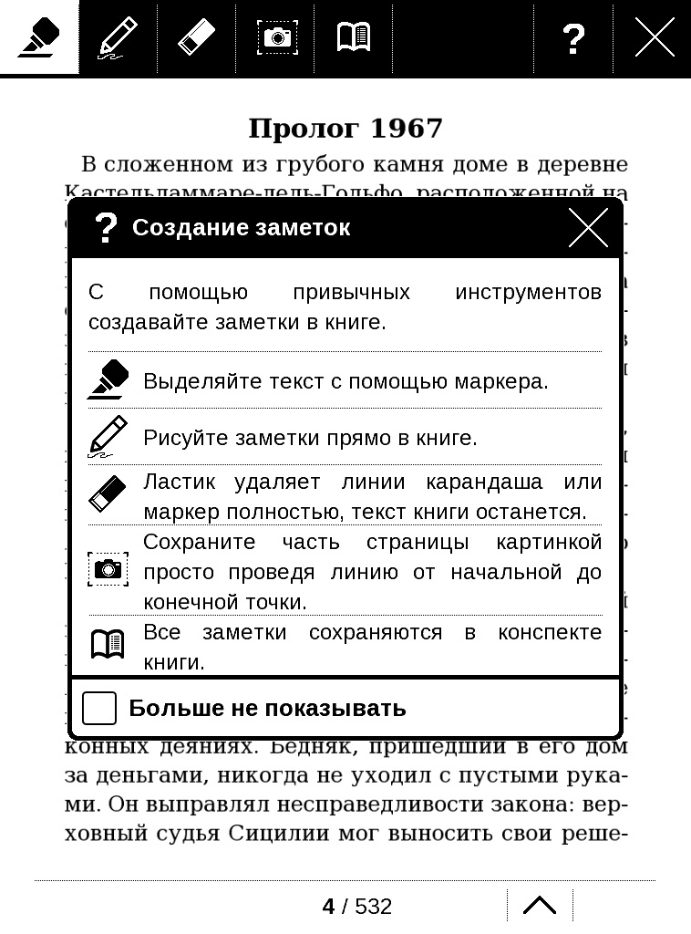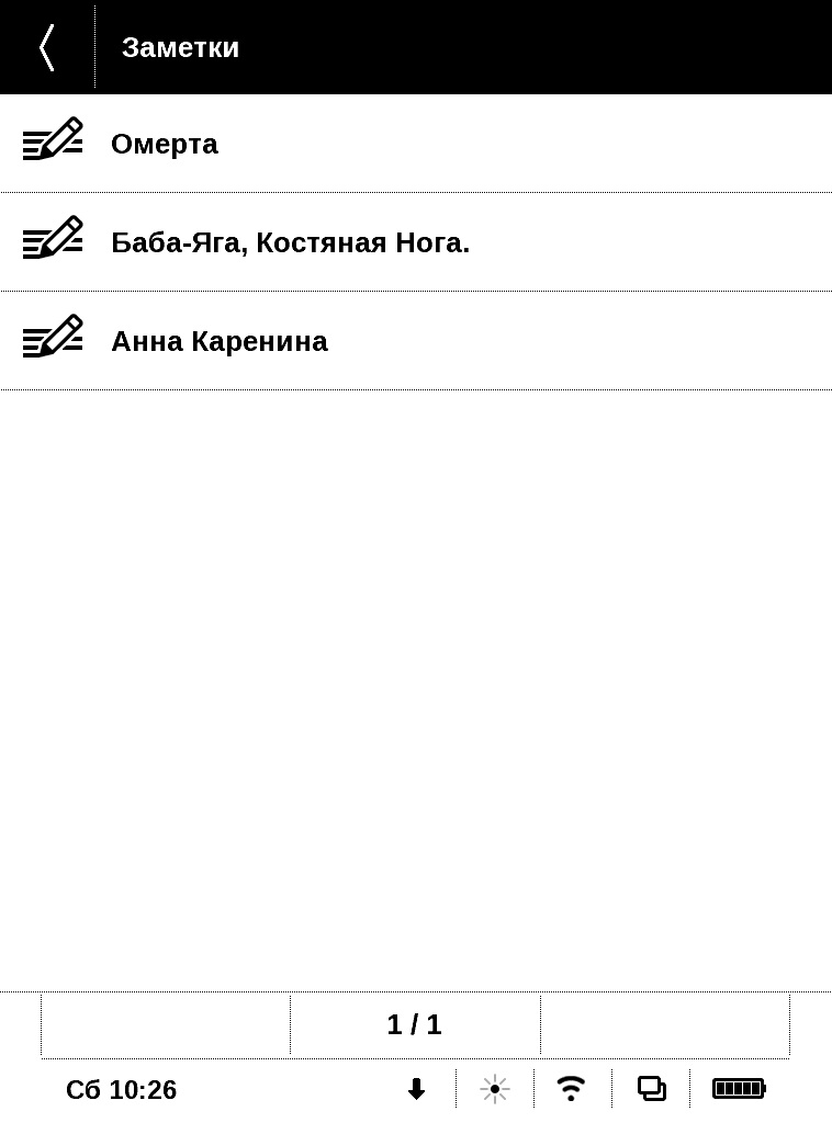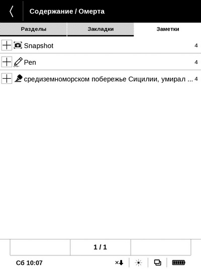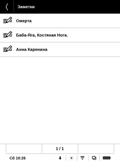 Пиктограмма "Заметки" показывает все книги, в которых сделаны заметки или закладки.