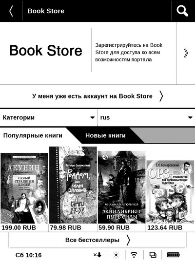 Вы можете зарегистрироваться в Book Store и приобретать там книги, которые будут скачиваться в ридер.