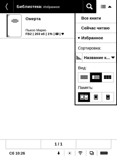 Добавили книгу в избранное - получили список всех избранных книг. (Там пока только она одна и есть.)
