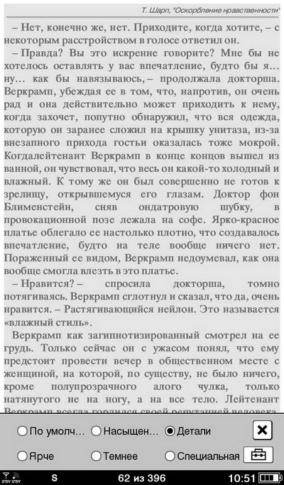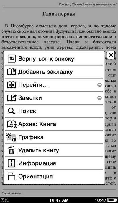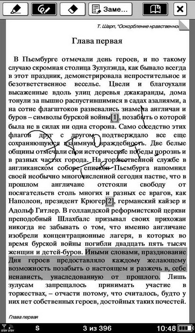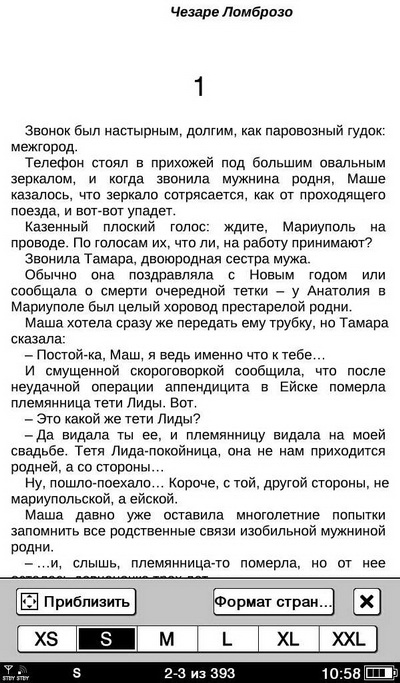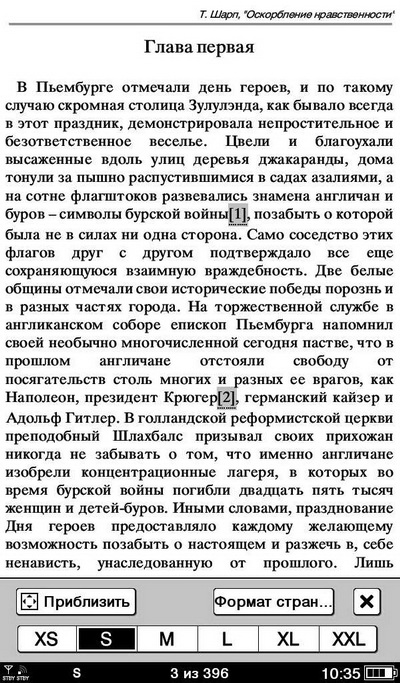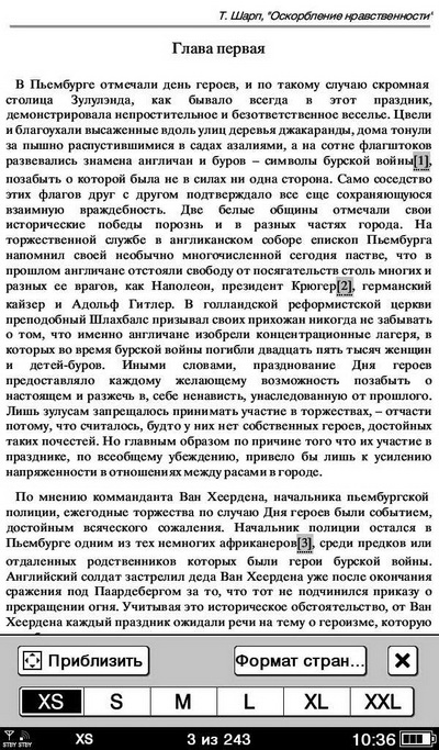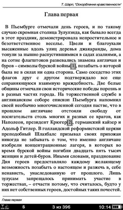 Документы EPUB читаются точно так же, как LRF, и для них доступны все те же самые возможности.