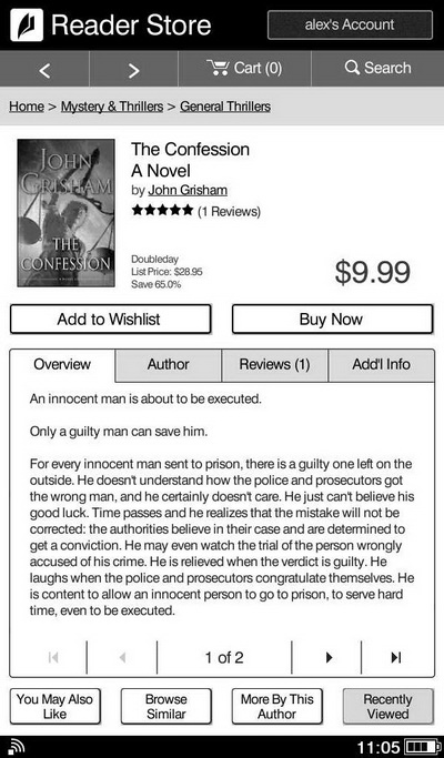 Сайт магазина специально заточен под доступ с ридера, и пользоваться им очень удобно. (Я тут же вспоминаю, насколько убого выглядел магазин "Айчиталки".)