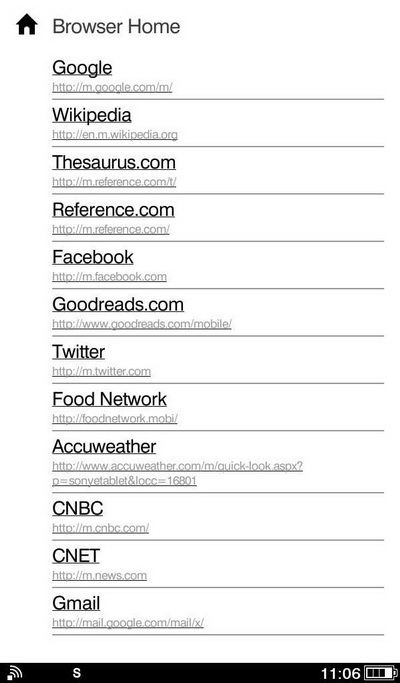 Увеличенный экран может понравиться тем, кто любит читать книги, используя крупный шрифт, а также тем, кто предпочитает разворот страниц. Также семидюймовый экран более удобен для чтения PDF (хотя и не настолько удобен, как, например, десятидюймовый экран, который Sony пока не использует). Доступ в магазин и покупки англоязычных изданий в онлайне российским пользователям вряд ли актуальны. А вот возможность прямо с ридера походить по сайтам - она, в общем, достаточно интересна.
