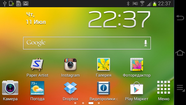 Установил CoolReader, потестировал работу фотоаппарата в режиме ридера. (Это звучит психоделически, но тем не менее.) Кстати, оказалось, что читать на нем, в общем-то, вполне можно. Планшетик получается чуть тяжеловат - 300 граммов против 133 грамма у Galaxy S III, - однако это не слишком напрягает. Например, почитать в дороге - никаких проблем.