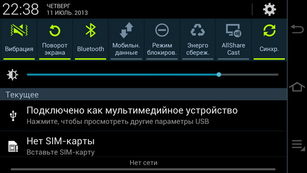 Область уведомлений. Сверху, как обычно у Samsung, куча всяких переключателей (всего 10).