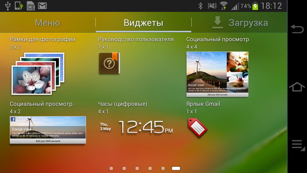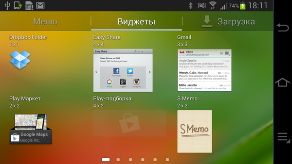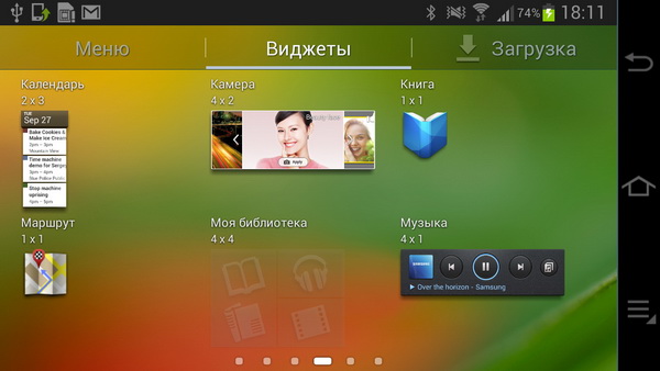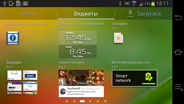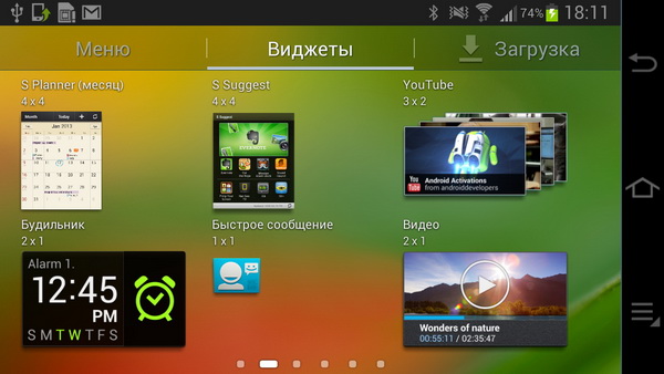Установленные в системе виджеты.