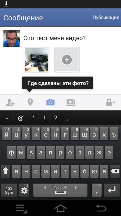 А вот отправка в Facebook.