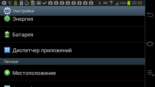 Настройки тут самые обычные, андроидные. На группы, как в Galaxy S 4, не разбиваются.