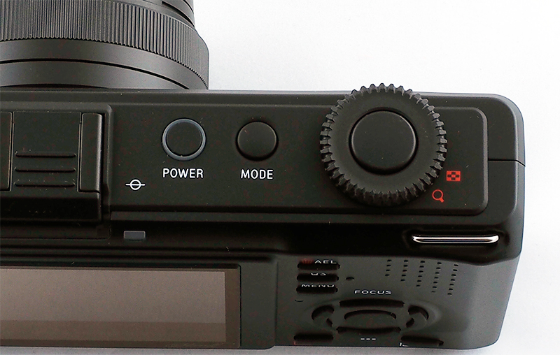 Управление камерой. На верхнем торце кнопка включения питания, кнопка режима съемки (видео, ручной, приоритет выдержки, приоритет диафрагмы, программный автомат, три пользовательских режима). Зубчатое колесо вокруг кнопки съемки меняет параметры настроек.