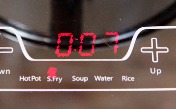 Очень удобная штука, которая здесь присутствует, - это таймер. Работает он очень просто. Выбираете какой-то режим нагрева, нажимаете на кнопку таймера, вводите нужное количество минут-часов (от 1 минуты до 4 часов) - через заданный промежуток времени таймер выключит плитку: при этом в процессе готовки попеременно будет показываться уровень нагрева и оставшееся число минут.