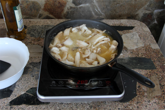 Вот, например, заснятый на фото процесс приготовления моей любимой каракатицы - ай, какая она там вкусная получалась, ай, вкусная! Вкуснее, чем на газовой плите. Уж и не знаю, что тому виной: то ли глубина проникновения скин-слоя, то ли из-за грамотного пробега индуцированного вихревого тока.