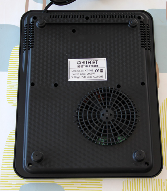В процессе работы плитки постоянно крутится вентилятор - он должен охлаждать нижнюю часть плиты. При обычном нагреве его почти не слышно, при сильном нагреве звук вентилятора хорошо слышен, но я бы не сказал, что меня это сильно раздражало. Тем более что в больших индукционных плитах также есть встроенный вентилятор и его тоже слышно при сильном нагреве.