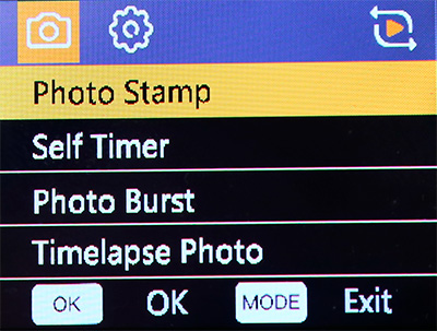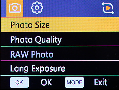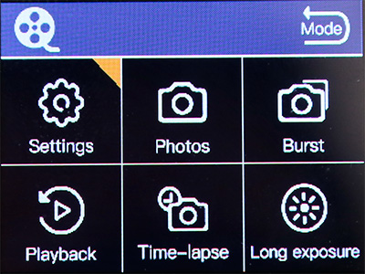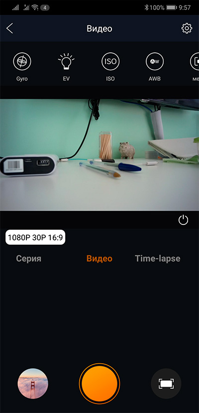 Нажатие кнопки "Вперед" - настройки и выбор типа съемки. Если включен режим видео - настройки и тип съемки даются, ожидаемо, для видео. Если режим фото - для фото.