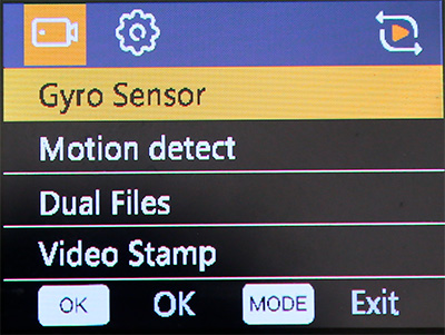 Gyro Sensor - включение стабилизатора. Доступно только для режима Full HD 30 fps.