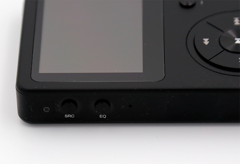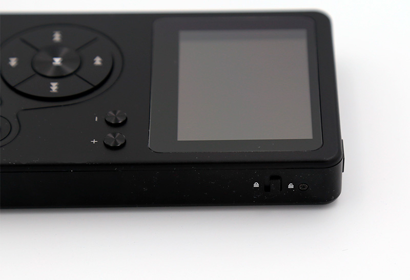 На левом торце - кнопка включения и переключения апсэмплинга, кнопка включения и переключения аппаратного эквалайзера. Также здесь есть кнопка Reset - она могла пригодиться на первых сырых прошивках, когда плеер мог зависать в каких-то ситуациях. У меня зависов не наблюдалось.