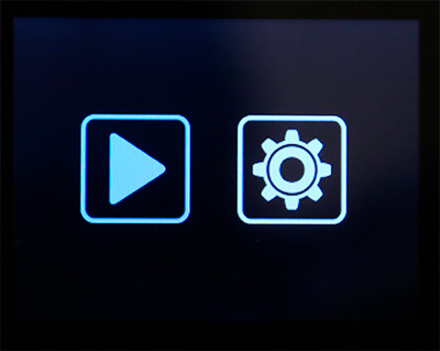 Включается плеер длинным нажатием на кнопку питания. Загружается за 3,5 секунды. Появляется вот такое предельно простое окно: играть или настройки.