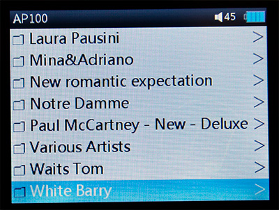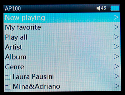 Меню проигрывания. Оно предельно простое: сначала идут различные режимы отбора и сортировки и прямо под ними - папки.