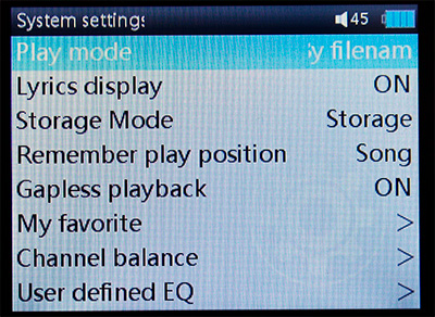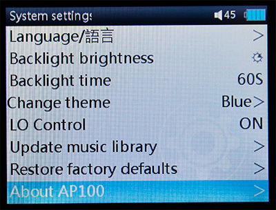 Русский язык здесь типа как поддерживается, но включать его не рекомендую: перевод совершенно дикий и, судя по всему, машинный. Лучше сразу включать английский - там по крайней мере все вполне понятно. (Читал отзывы о прошивке с русским языком предыдущей версии этого плеера еще от 2016 года - там надеялись, что скоро все поправят. Ага, ага, надежды юношей питают: до сих пор совершенно дикий русский, как тот тунгус.)