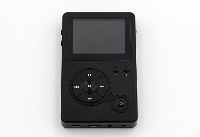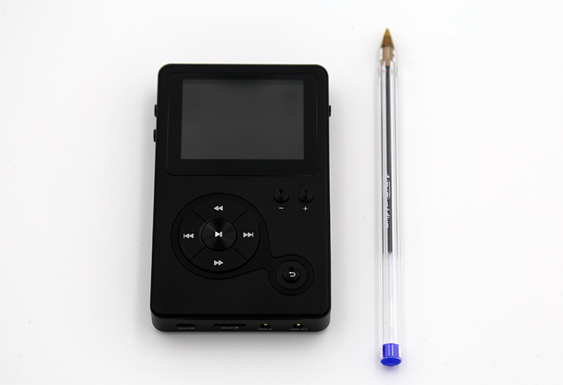 Дизайн довольно простой, я бы даже сказал - олдскульный. Экран несенсорный (да оно и правильно), управление довольно простое, но удобное. А то, скажу я вам, заколебало управление кольцом, как у Fiio X3. Здесь - все просто и понятно: играть-пауза, вперед-назад, трек вперед - трек назад, возврат, регулировка уровня звука. (Регулировку звука, конечно, поначалу ищешь на боковых торцах, но к фронтальному положению привыкаешь быстро.)