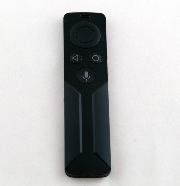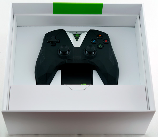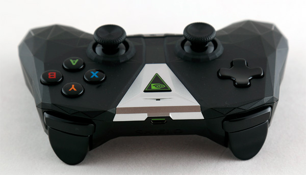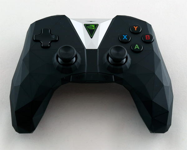 Органы управления: крестовина слева, кнопки A, B, X, Y справа, два джойстика с нажатиями, управляющая кнопка с логотипом NVIDIA. Под джойстиками - три управляющие андроидные кнопки: "Возврат", "Старт/пауза", "Домой". Длительное нажатие "Домой" вызывает специальное меню приставки. Под этими кнопками на заднем торце расположен аудиовход для подключения наушников.