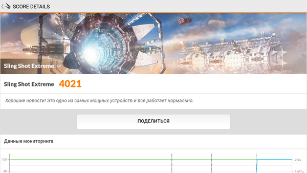 Тест производительности показал индекс 4021 - устройство очень мощное. По спецификации оно справляется с видео 4К с кодеком H.265 и частотой кадров 60 fps.