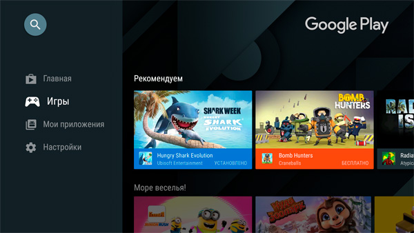 Раздел "Игры" - игры под Android TV. Их очень много: есть возможность отбирать игры по жанрам, по платности-бесплатности, популярности и так далее.