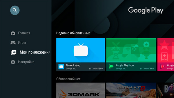 В разделе игр Google Play он показывает как все ваши андроидные игры, отмечая их, если они не для Android TV, так и игры, разработанные для Android TV, и их можно скачать и запустить.