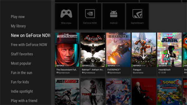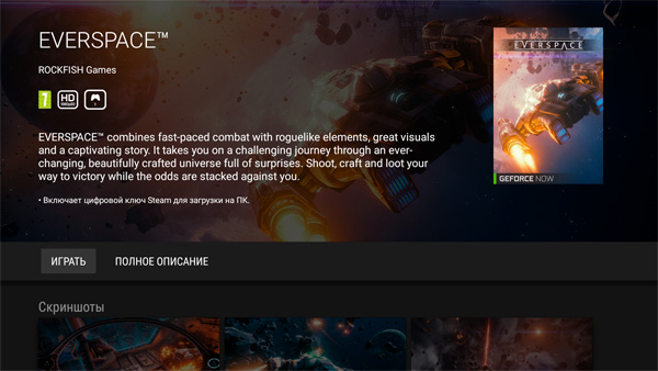 В этом приложении доступен фирменный игровой стриминговый сервис GeForce Now, позволяющий на этой приставке играть в серьезные ПК-игры на максимальных параметрах качества - без всякого компьютера, используя только мощности приставки.