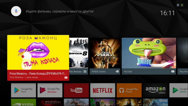 Android TV разрабатывалась специально для приставок и медиаплееров, поэтому оболочка там несколько отличается от привычной андроидной и напоминает оболочки соответствующих устройств - медиаплееров и игровых приставок.
