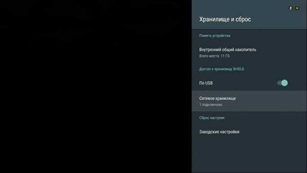 В настойках есть немало всяких возможностей: вы можете разрешать или запрещать подключать внешние устройства через USB, можете подключать сетевые хранилища, которые будут доступны через приставку.