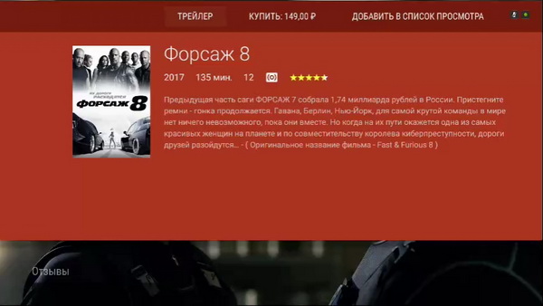 В "Google Play фильмы" можно найти большое количество картин, и они отбираются по куче критериев: жанры, недавние премьеры, топ продаж, рекомендованное, российское кино, фильмы до 80 рублей, коллекции фильмов, фильмы со скидками - и так далее и тому подобное. На приставке поддерживаются и картины HD-качества, которые воспроизводятся без каких-либо проблем.