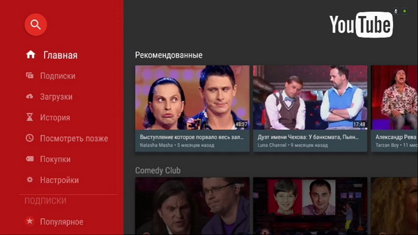 YouTube доступен со всеми соответствующими сервисами: подписки, загрузки, списки для просмотров, рекомендованные и так далее.