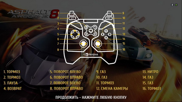 Версии игр под Android TV могут показывать распределение игровых функций на геймпаде.