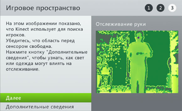 Каких-то других требований при установке Kinect нет. Контроллер должен быть подключен к Xbox 360, находиться под или над изображением, а между ним и вами должно быть определенное расстояние (от метра до трех), и вас не должны загораживать какие-то предметы (мебель).