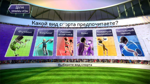 В спортивных играх на выбор даются футбол, боулинг, легкая атлетика, бокс, пляжный волейбол, настольный теннис.