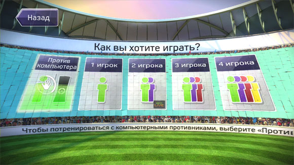 Выбрал боулинг. Там, в силу специфики игры, можно играть с компьютером, одному, вдвоем, втроем, вчетвером (разумеется, по очереди).