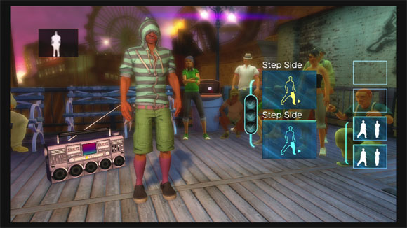 Выбираете вид танцев и начинаете обучение. Вам показывают различные танцевальные движения - от простых к сложным, - которые нужно повторять. Контроллер четко отслеживает ваши движения (тело, руки, ноги) и показывает, насколько правильно вы все делаете. Если делаете неправильно, на следующий этап обучения не перейдете.