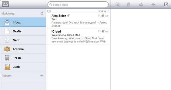 Почта в iCloud синхронизируется не любая, а только ящик на домене me.com. Я завел ящик, потестировал - вроде все работало без проблем, хотя какие-то пользователи жаловались, что у них все происходило очень долго, а периодически выдавалась ошибка, что, мол, неверный логин-пароль.