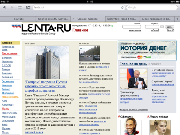 Safari серьезно доработали. Во-первых, в нем наконец-то появились вкладки сайтов (в версии для iPad), а то эти отдельные страницы уже замучили.