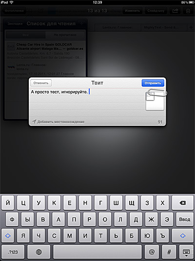 Еще одно нововведение - возможность отправлять изображение с сообщением из фотоальбома прямо в "Твиттер".