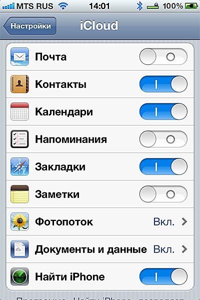 Потестировал, как переносятся данные, - все синхронизируется очень быстро, почти мгновенно. Однако тут есть одна тонкость. Если вы контакты-календари создаете непосредственно на самом устройстве или в Outlook с последующей синхронизацией, то эти данные будут синхронизироваться с iCloud. Однако если у вас используется синхронизация календаря-контактов-почты-напоминаний с гугловским аккаунтом (у меня именно так и сделано), тогда эти данные не будут сохраняться в iCloud, потому что они и так уже хранятся в "облаке", только гугловском.