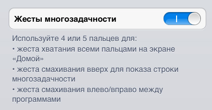 Наконец-то добавились новые жесты, которые включаются в настройках. Правда, это все работает только в iPad 2, для iPad недоступно.