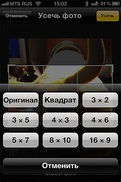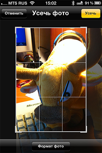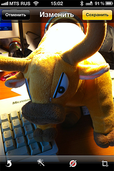 Сразу после съемки фотографию можно редактировать (кнопка "Изменить"). Доступны следующие возможности: поворот, автоматическое улучшение изображения, убирание эффекта красных глаз, кадрирование.
