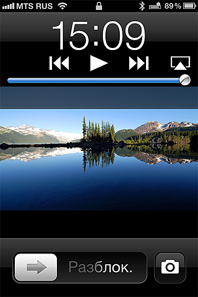 Впрочем, быстро выяснилось, что в Apple не дураки сидят: если кнопку поставить на основной экран блокировки, она будет случайно нажиматься. Поэтому вызов камеры появляется при двойном нажатии на Home на окне блокировки - вместе с панелью управления плеером. Правильное решение!