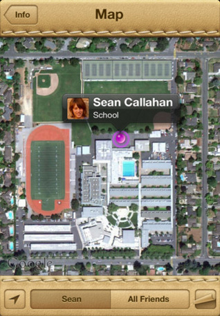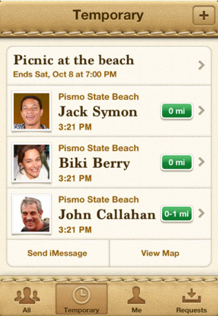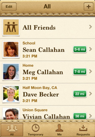 Это приложение надо скачивать (Find My Friends). Оно работает через iCloud и позволяет отслеживать местоположение друзей (с их согласия) - расстояние до них, положение на карте и так далее. Отслеживание вашего местоположения вы сами можете включать и выключать. Кроме того, там предусмотрена возможность создания временных компаний для отслеживания - например, при поездке на пикник.