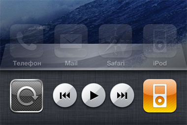 Если пролистнуть список вправо, появится постоянный набор кнопок: фиксация экрана (отключение автоматического поворота), клавиши управления плеером и вызов iPod.