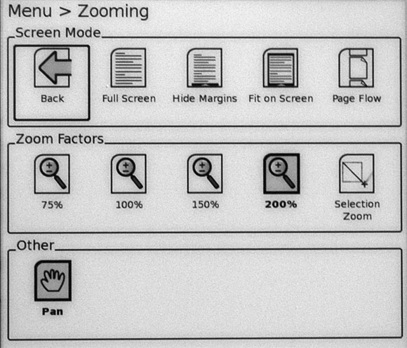 Масштабирование в этом ридере осуществляется в широких пределах - это очень удобно при работе с PDF.
