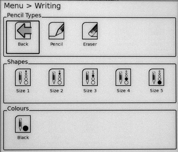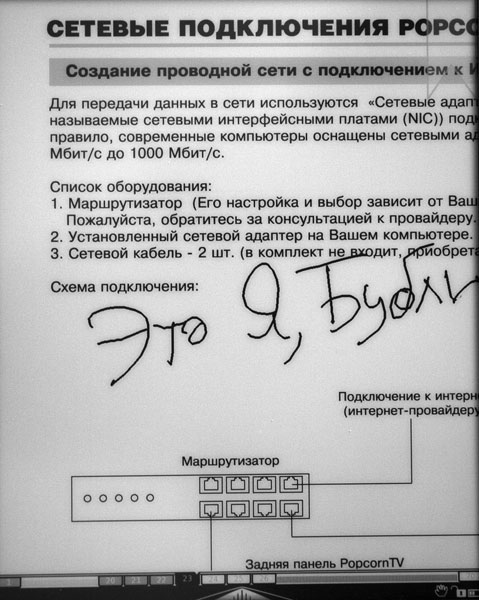 Сопровождение текстом закладки, видимо, не делалось потому, что эта модель позволяет рисовать стилом прямо поверх документов. Для этого нужно перейти в режим рисования и выбрать вид инструмента - карандаш или ластик. У карандаша можно менять размер "грифеля".