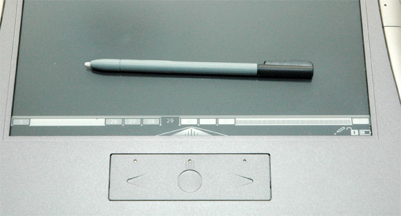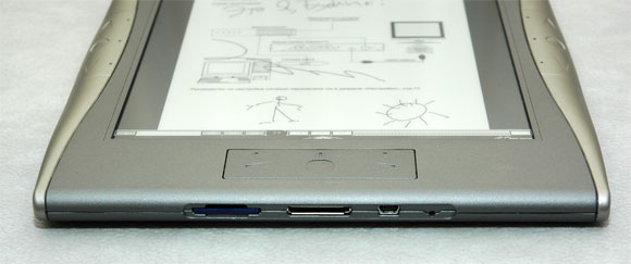 Чувствительность экрана здесь реализована примерно так же, как в планшетах фирмы Wacom, недаром у стило установлен именно вакомовский сенсор. Это, с одной стороны, позволяет не использовать специальную сенсорную пленку, которая заметно ухудшает контрастность (как это было у Sony PRS-700), но с другой - данное устройство реагирует только на свое собственное стило, а на прикосновение пальцев не откликается вообще.