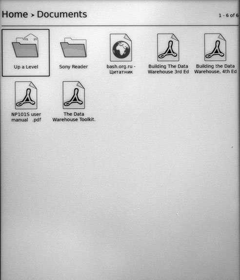 Несмотря на наличие встроенной памяти, ридер считывает документы только с SD-карточки, так что если она не вставлена, то фолдер Documents не появится. При подключении ридера к USB на экране возникает вопрос, требуется ли переключить ридер в режим обмена данными с компьютером: если на вопрос ответить положительно, то на ридере возникнет соответствующая картинка, а в компьютере появится новое логическое устройство, представляющее собой SD-карточку ридера, куда можно закачать какие-то данные.