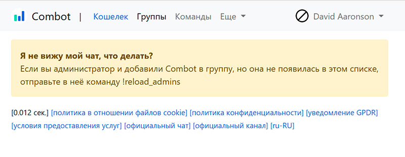Нажимаем на кнопку "Перейти", и оказываемся на странице Combot в браузере под соответствующим логином.